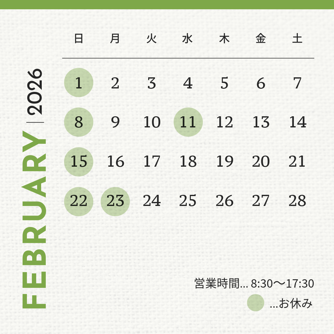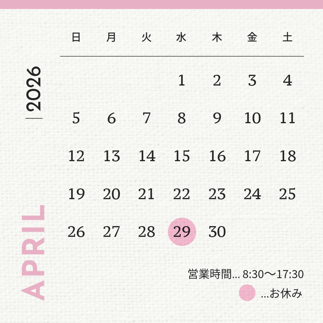 8:30~17:30(キャンペーン期間中は変動いたします。お問合せください。)