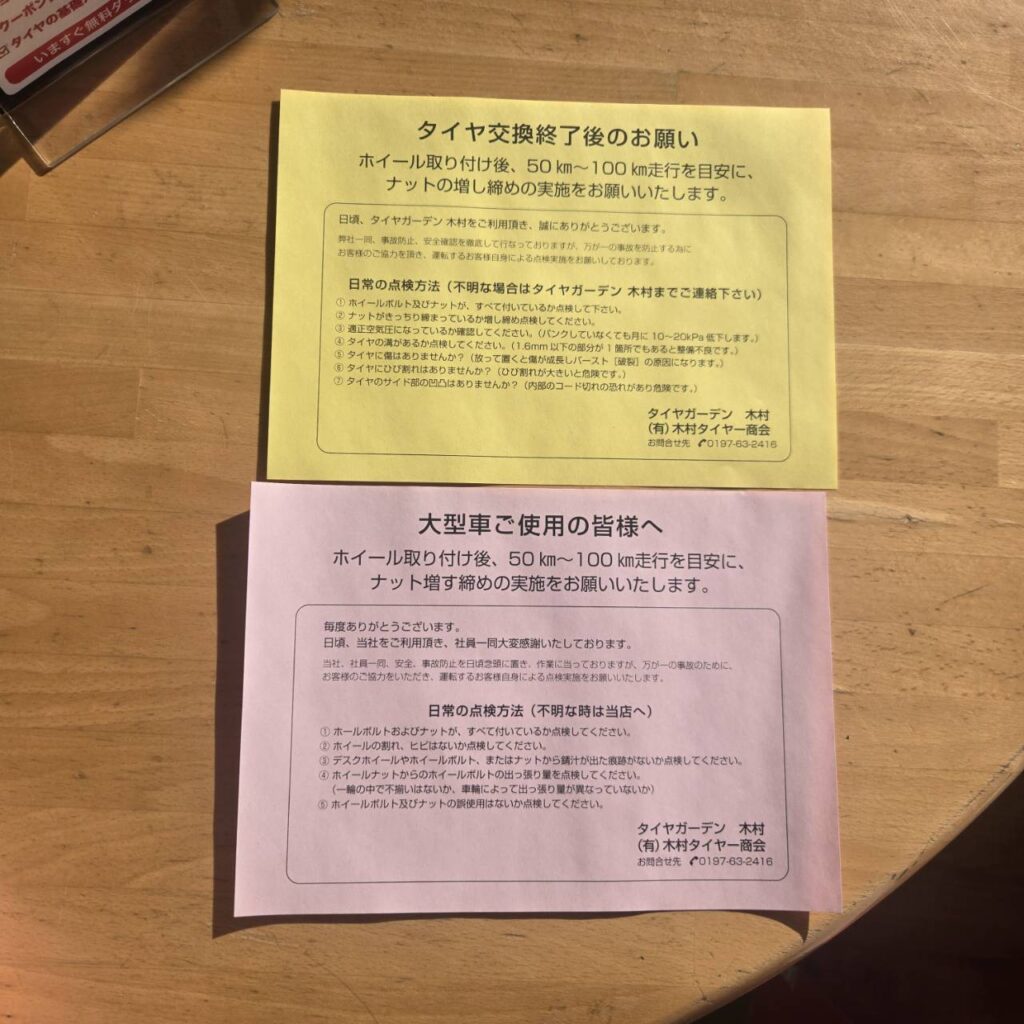 増し締め、空気圧調整、タイヤ点検は無料で行っておりますので是非ご利用ください。